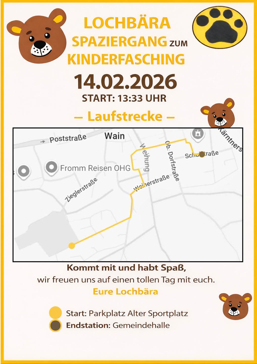 Lochbär Spaziergang zum Kinderfasching